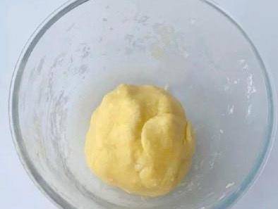 第四步:加入過篩的低筋面粉,食用鹽,芝士碎,均勻拌成一個面團