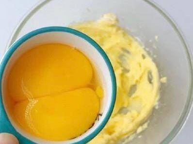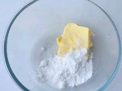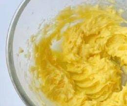 第三步:室溫軟化的黃油,加入30克糖粉打發均勻,然後分次加入蛋黃,打發到打白