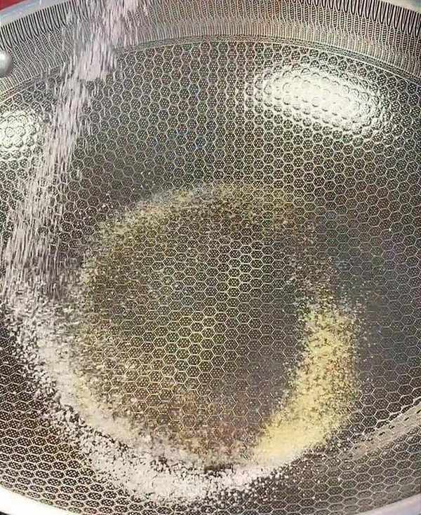 接著,先開大火把鍋燒冒煙,再倒入比平時炒菜稍多一點的食用油,然後轉動鍋身潤一下鍋,再撒一點點鹽(這樣可以預防煎魚的時候粘鍋)。