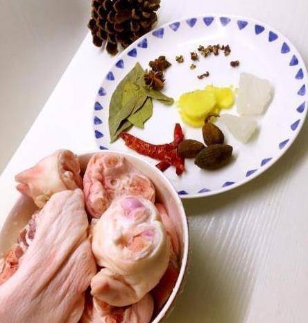 豬蹄一個、香葉適量、草果適量、冰糖適量、幹辣椒適量、生薑適量、花椒適量(不喜歡可以不放)