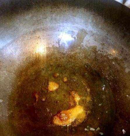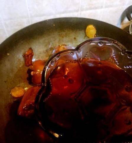 炒糖色:鍋裡放油,小火加熱至油5成熱,冰糖放進去