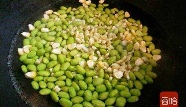 3.鍋中燒開水,倒入毛豆和玉米粒,加入少許油和鹽焯水後撈出瀝水。