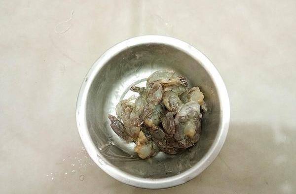 3、接下來就可以將買回來的新鮮大蝦清洗幹凈,然後再用一根牙簽去除蝦線,剝出來之後就可以將蝦仁開背,再加上少許的料酒和少許的胡椒粉,再加入少量的淀粉,然後進行抓勻。