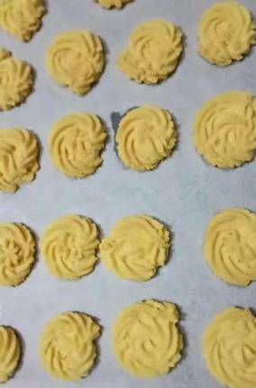 用料:黃油120g,蛋黃一個,細砂糖40g,低筋粉130g,鹽1g,香草精1g可不放