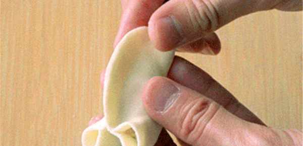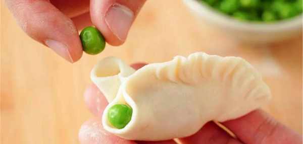 第五步:將面皮放到手掌中,取適量肉餡放到中間,在三分之一處捏合,再將孔延中間黏合,其餘部分正常包再捏花邊,形似錦鯉尾。