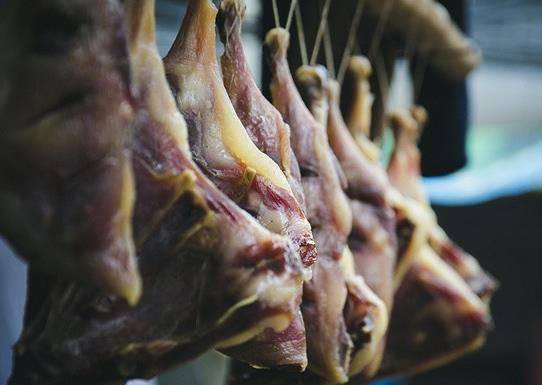 然後又將臘肉掛回陰涼、幹燥的房間裡,