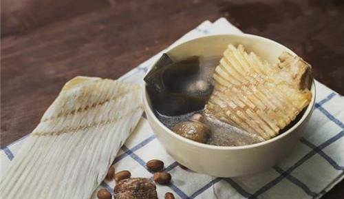 取走地雞半隻,鯊魚骨80克,幹響螺片50克,薑3片,先把雞、泡發好的鯊魚骨和響螺片分別氽水,再把所有材料放入煮沸的清水裡,煲兩個小時,下鹽即可食用,滋補養身。