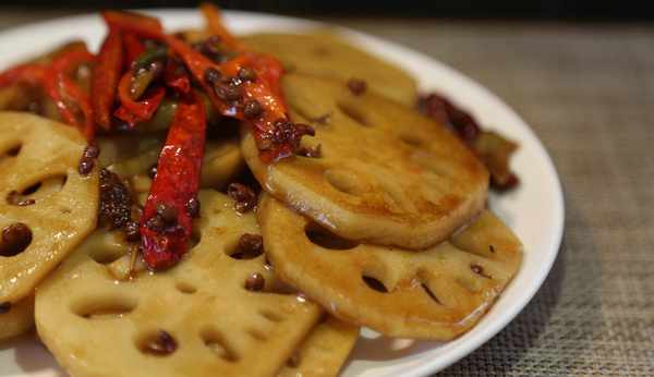 蓮藕本身富含淀粉,而且因為又加入瞭白糖,在出鍋前自然湯汁會呈現粘稠狀,所以不需要淀粉水勾芡。這樣一盤酸甜適口又略帶椒香味的藕片特別下飯。