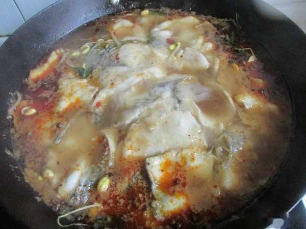 第六步:蓋上蓋子小火燜熟。不要用大火,大火很容易把魚片咕嘟碎了。