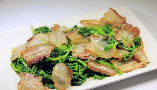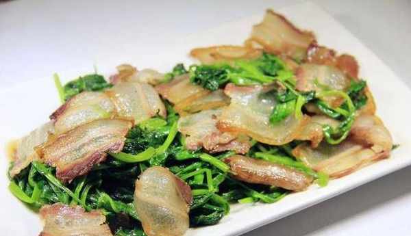 做法:1、把準備好的豌豆尖洗幹凈,再晾幹水分,把臘肉切片後備用。