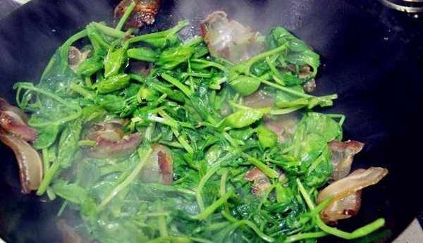 主料:豌豆尖、臘肉。輔料:食用油、花椒、鹽、雞精。