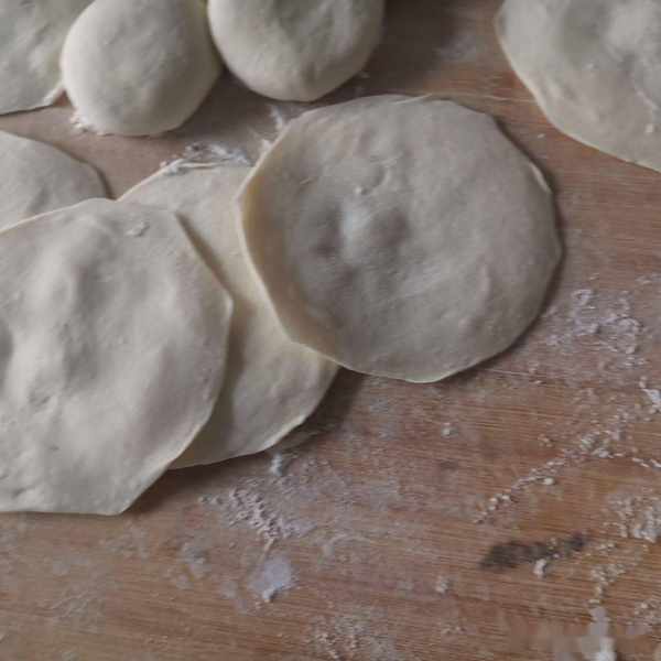 第五步:麵團拿出揉勻,揪成小劑子,擀成圓形的包子皮。肉餡包子不要把面劑子分割得過大,蒸的小一點會更好吃。