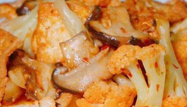 3.鍋裡倒油,爆香蒜末,挖一勺紅油豆瓣辣醬放入鍋裡煸炒,把有機花菜、香菇和老豆腐依次倒入鍋裡翻炒,可以適當加點水,撒鹽調味,待有機花菜變軟就能出鍋。
