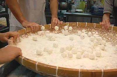 真正的元宵,它的做法有個獨特的名字,叫“滾元宵”。為什麼叫滾元宵呢?因為元宵的做法是將素的固體甜餡料,切成小塊,蘸上水,然後在盛滿糯米面的笸籮內滾,一邊滾一邊灑水,使其自然沾滿糯米面滾成圓球。所以叫滾元宵瞭。