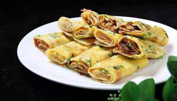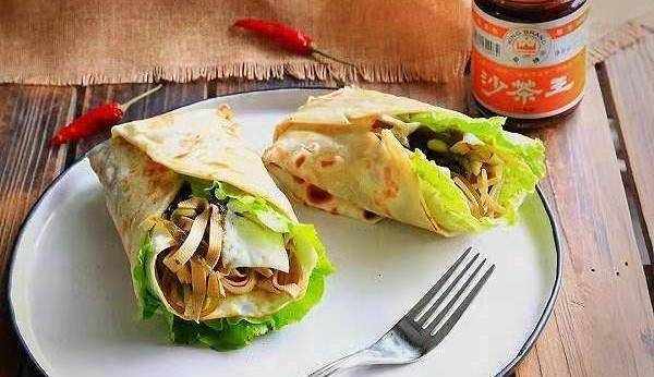 一種煎的黃一半的餅皮就可以瞭,然後再往裡面加入所有的配菜,配菜的話那隻有黃瓜,雞蛋,牛肉,還有火腿腸生菜瞭,這樣都可以放到面餅上呢,然後你再在所有的車上給它淋上甜面醬,愛吃辣椒的話那就可以再沾上辣椒醬,然後卷起來就可以瞭。