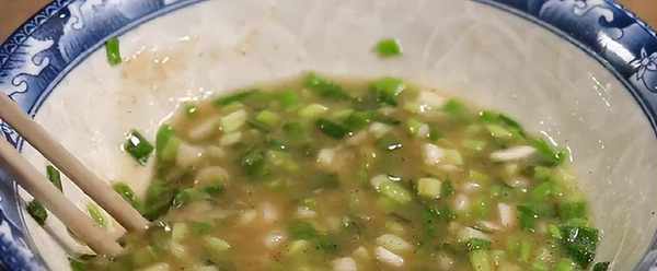 第六步,利用這段時間,把蔥切成蔥花放入碗中,再加入適量的面粉、十三香、食鹽,再淋上熱油,拌勻,調成油酥。