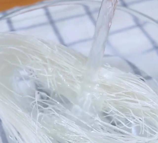 第1步、粉絲用溫水泡軟,然後切碎備用。