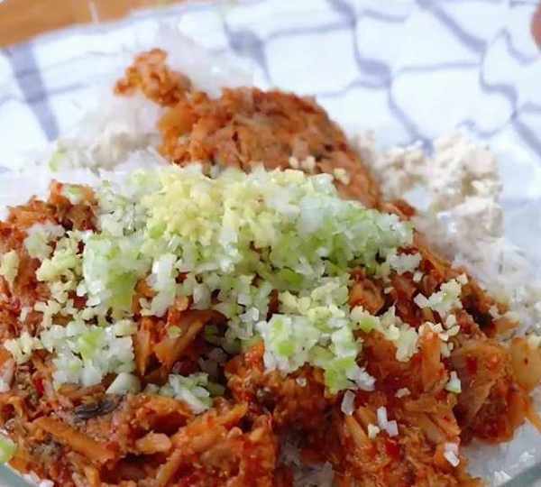 原料:泡菜、五花肉末、龍口粉絲、北豆腐、老抽、生抽、蠔油、雞精、綿白糖、蔥、香油、料酒、黑胡椒粉、薑。