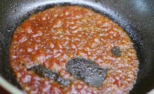 鍋裡加入適量油,加入番茄沙司稍微翻炒。