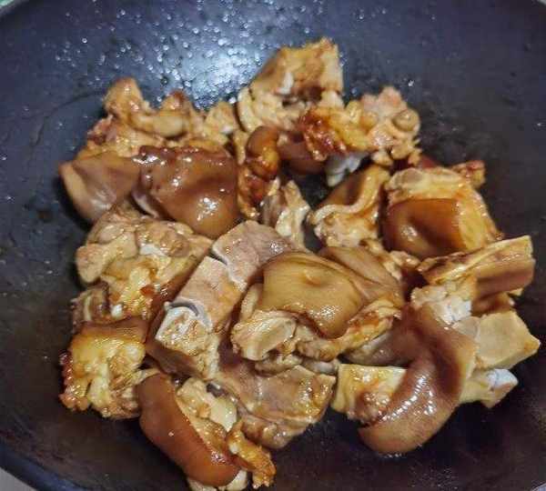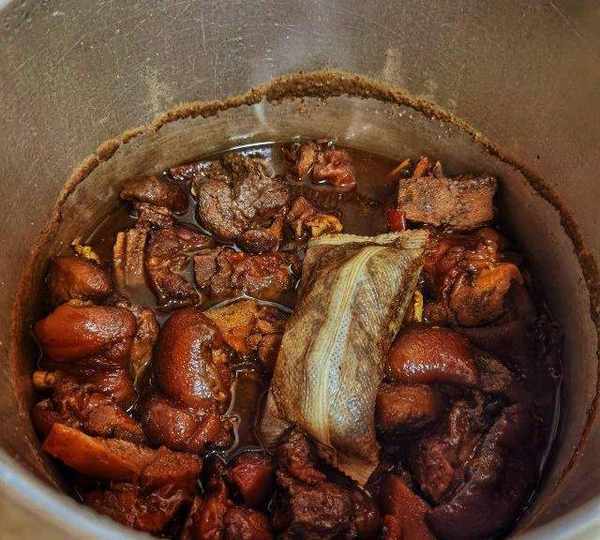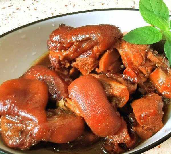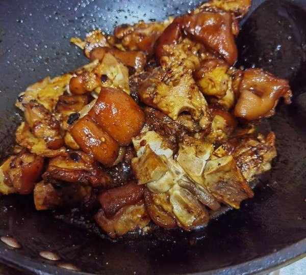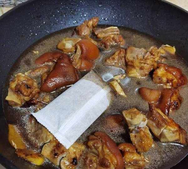 原料:豬腳、薑、幹辣椒、豆瓣醬、冰糖粒、鹽、生抽、老抽、料酒、胡椒粉、鹵料包。