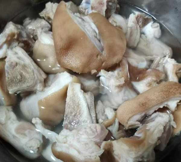 第3步、焯水後的豬腳沖洗幹凈,瀝幹水。