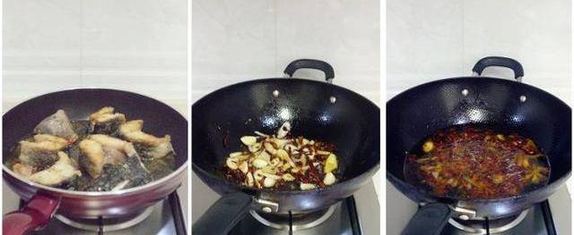 首先,將魚塊裹一層面粉放鍋裡油煎至半熟,然後再加調味料燒煮。就煎炸這步是讓魚不腥的主要原因,尤其是裹瞭面粉後煎的,醇香滋味會更勝一籌。