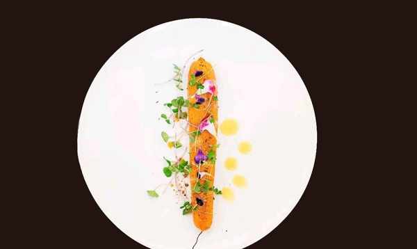鱸魚塊:用鹽、胡椒粉、橄欖油兩面調味,和百裡香、大蒜、黃油一起抽真空密封55度蒸30分鐘,取出後下入平底鍋中,用黃油煎脆。