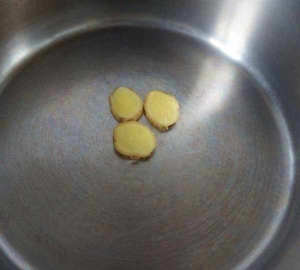 第2步、鍋內先放入3片生薑。