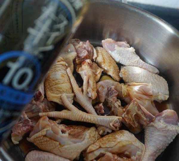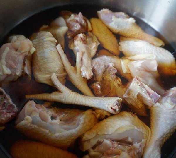 第6步、倒入500毫升清水,沒過雞肉。