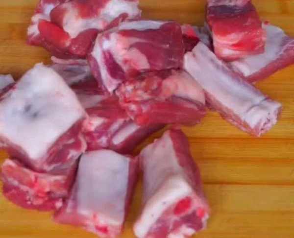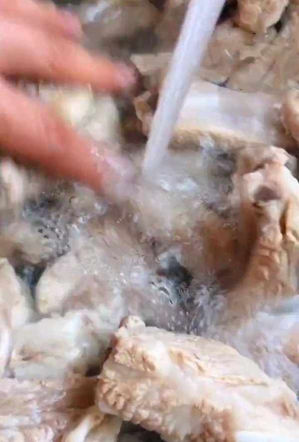第一步,我們首先將買來的豬排骨剁塊,然後涼水上鍋煮,加料酒,待煮出浮沫,關火。撇去浮沫,最後過遍涼水撈出備用。
