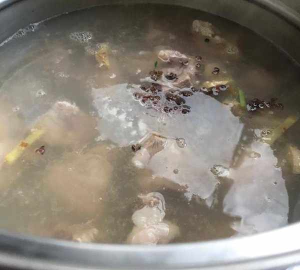 第7步、再加入開水抹過排骨,撇去浮沫。