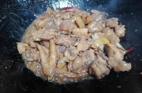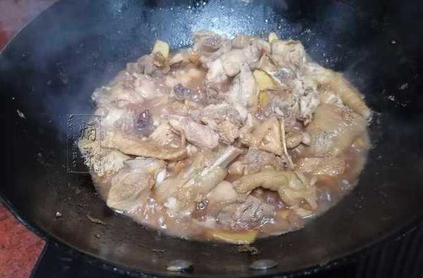 10、直至將鍋內的雞肉,燉的完全爛熟瞭之後,就可以準備關火出鍋瞭。