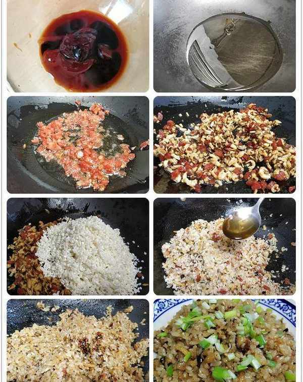 溫馨貼士:我們最好把糯米提前泡24小時,沒有時間的話就提前泡30分鐘。香菇水不要扔掉,它會增加糯米的鮮味,所以香菇最好要洗凈後再泡水。臘腸還有咸味的,看個人口味就可以。糯米放入鍋後,要小火勤翻炒,不能讓糯米糊鍋,如果糯米放的多,香菇水也要多加幾次,直到把糯米炒軟。