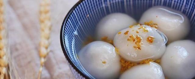 準備食材:芝麻40克,細砂糖20克,花生30克,桂花30克,糯米粉250克,開水220克,冰糖80克。