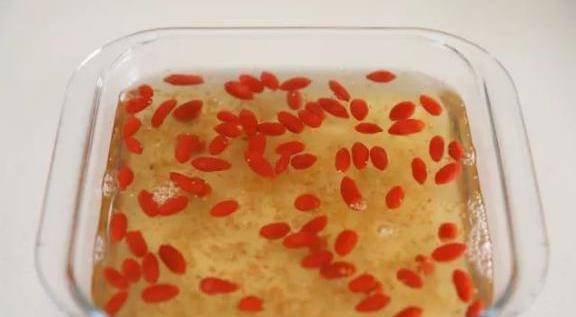 1、把枸杞提前泡發,同時,把吉利丁片也提前用冷水浸泡;