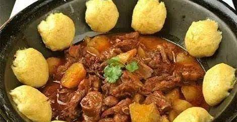 一個很奇怪的名字,原意是“主菜和主食一起上桌”。在鍋裡又燉菜又烀餅子。這道菜菜燉在鍋底,餅子貼在鍋邊。食材很豐富,味道也多種多樣。但是吃一鍋出帶來的幸福感卻是相同的——滿足。