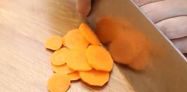 1、準備兩根胡蘿卜,用水清洗幹凈之後,再用削皮器把皮削掉,然後用刀切成薄片。