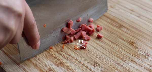 3,趁蒸土豆的功夫將胡蘿卜和香腸切成丁