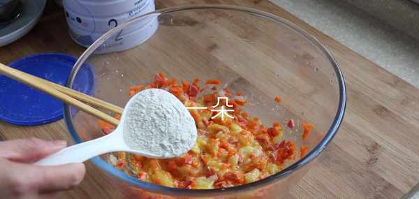 6,最後加入一勺面粉,面粉能增加黏性