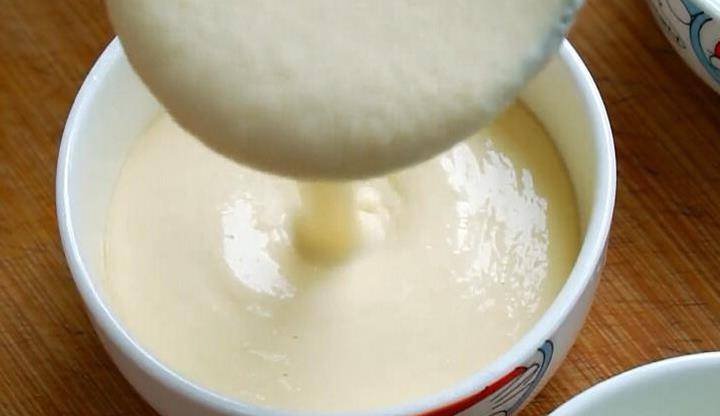 4、再往打好的米糊裡面加兩勺白糖(這個根據自己的口味,喜歡甜一些的可以多加一些),再加兩杯面粉(這裡的杯子是蒸米飯用的杯子就好),用攪拌器攪勻。