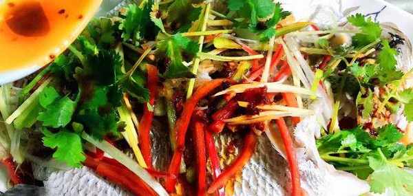 接著把剩下的蔥薑絲,青紅椒絲和香菜段擺在魚身上;再根據個人的咸淡口味淋上蒸魚鼓油;最後另起鍋倒入適量的花生油燒至8成熱,再倒出從魚頭淋到魚尾上,這樣一道香嫩又入味的清蒸活魚就做好瞭,你也嘗嘗味道吧!