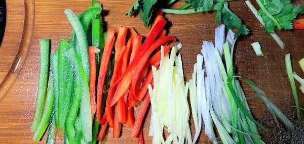 另外需要把香蔥、生薑、青椒紅椒洗凈切成絲;香菜也洗凈切小段;然後將切好的一部分香蔥、生薑、青椒紅椒絲都擺放在魚的底面。
