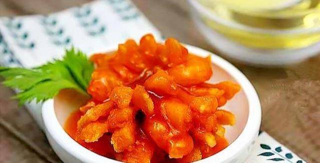 7、鍋中留一點油,擠入一些番茄醬,加入五六勺的白糖,根據自己的口味可以適當的增減白糖的量,攪勻後倒一點水進去,再放入一點食鹽和白醋,再倒點水淀粉進去把湯汁煮濃稠,最後加點油進去,顏色會更亮,湯汁濃稠以後就可以澆在魚肉上面瞭,再放點香菜葉子點綴一下就可以瞭。