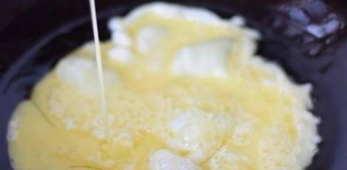 2拿兩個雞蛋把它們打碎。把鍋加熱,再倒些油。油熱後,倒入蛋液,滑起,迅速取出。
