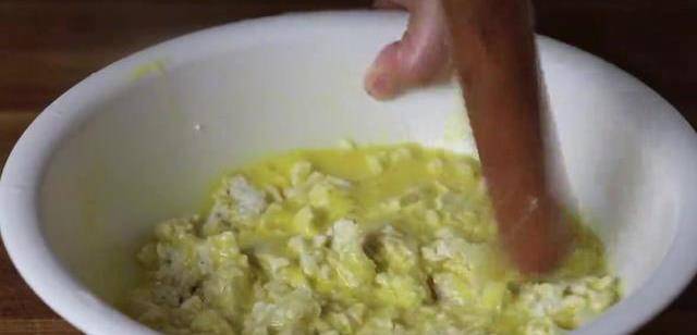 首先在碗中打入三個雞蛋,用筷子攪散。接著放入一塊豆腐,用搟面杖壓成豆腐泥。再加入一手淀粉,攪拌成糊狀。盤中刷成食用油,倒入面糊,冷水上鍋,水開後蒸20分鐘,碗中加點生抽陳醋、老抽、蠔油、食用鹽、白糖、淀粉,適量的清水攪勻後備用。