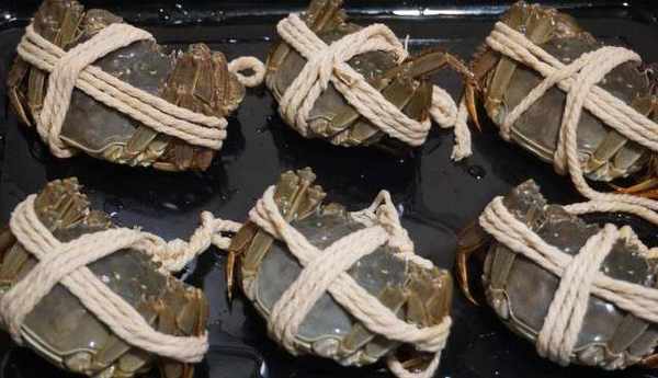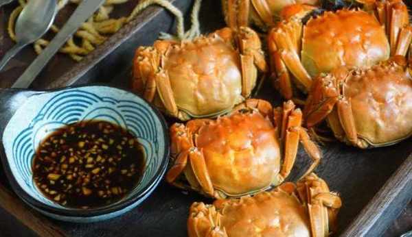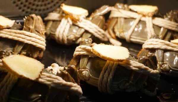 食材:大閘蟹6隻(一般是3公,3母),薑片6片,料酒一碗。調料:香醋,薑末。