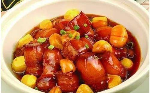 栗子紅燒肉是一道傳統名菜,屬於京菜系。此菜五花肉以肥瘦相間為佳,烹調前要下鍋煸出油,一可除去多餘的油份,吃起來不會過於油膩;二可給五花肉上色,使其金黃焦香。