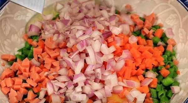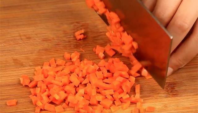 3.把胡蘿卜也切成小丁。