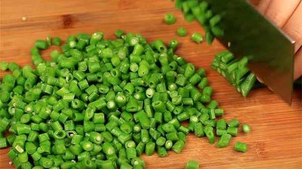 2.豆角切成小丁。