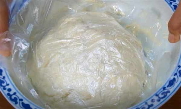 1.準備500g的普通面粉,3g鹽,340毫升的溫水和面,一直攪拌成粘稠的面糊,表面都抹上油,封上保鮮膜放冰箱冷藏一個晚上,如果著急吃,餳上40分鐘也行。